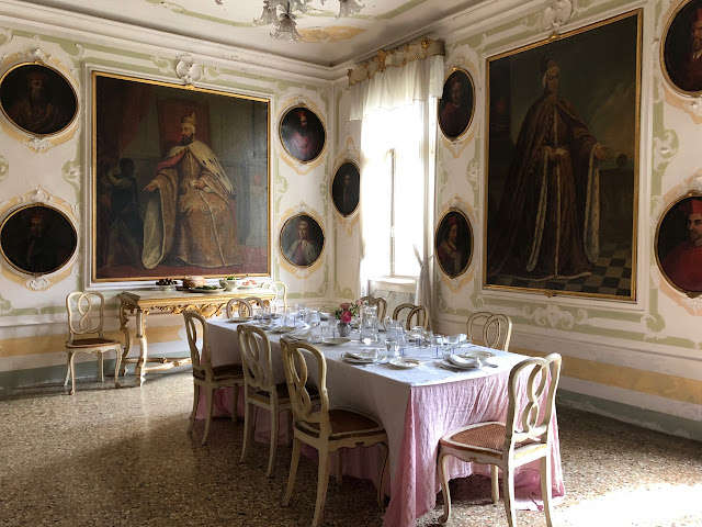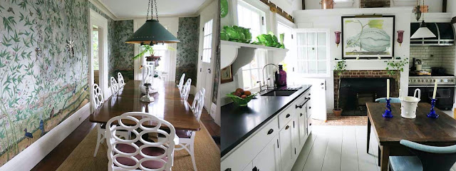 The highlight for many visitors on this day was the classical white pavilion, which was, in fact, a chicken coop, set charmingly inside an idyllic flower garden blooming with poppies, salvias, and roses. Inside, the kitchen and dining rooms (which Christopher kindly let me see, but which weren't open to the public) were elegant studies in understated sophistication. The dining room was sublime, especially with the botanical wallpaper. But I loved the kitchen the most, I think.