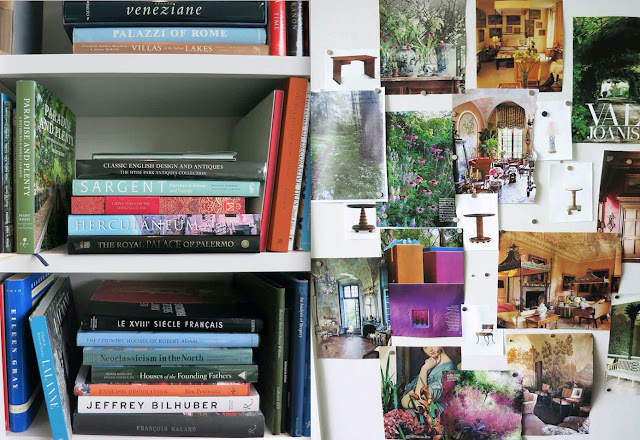 But it was the books that held court here. There were hundreds of design and gardening titles. And everything was intriguing. Even Bunny's mood board, below, was fascinating.